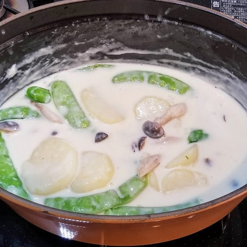 【レシピ】シチューの素不使用!砂糖豌豆のクリームシチュー