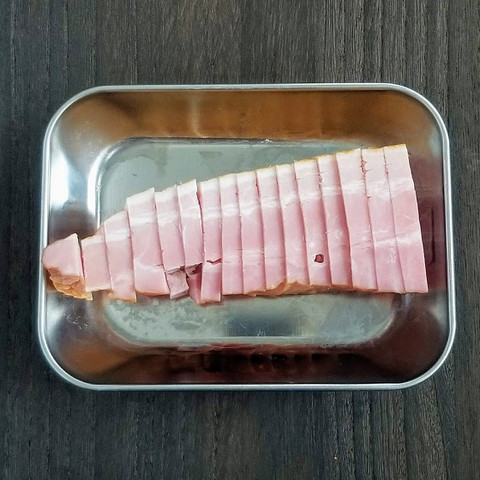 3.フライパンにサラダ油を入れて中火にかける。 4.ベーコンを重ならないように並べる。