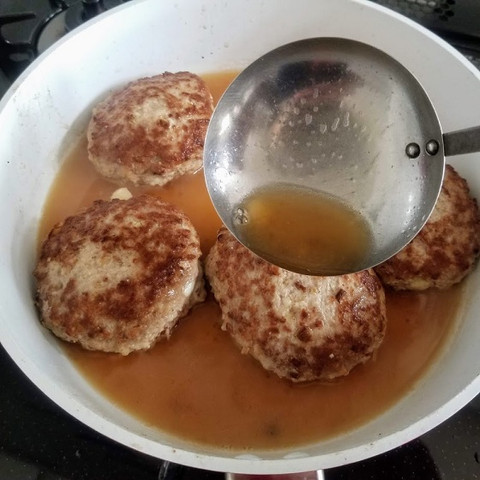 和風の味付けなので、こんもりと盛った大根おろし 昔、デニーズ(ファミレス)にあった和風ハンバーグのイメージで。 (今もあるのかな・・・?)