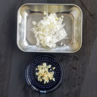 4.フライパンを中火にかけて、ごま油、鷹の爪、豆板醤を入れて、しっかりと炒める。