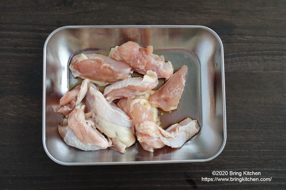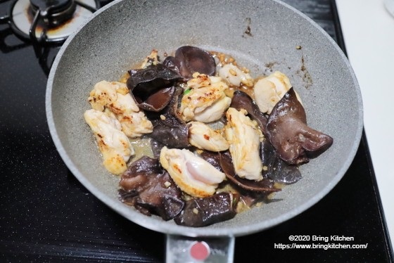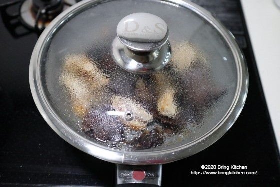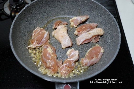 蓋を使えばすんなりと火が通ってくれる鶏モモ肉。