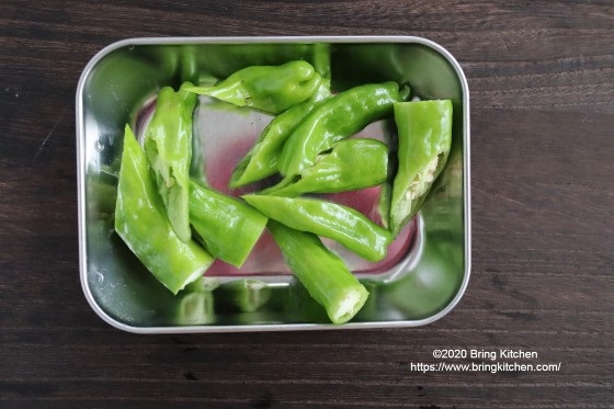 合わせる食材は、鶏もも肉と色目にししとう。