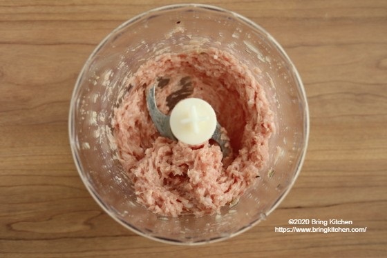 今回はフードプロセッサーを使用していますが、手ごねにすると肉感が強くなります。 また、電子レンジか蒸し器で調理するかでも食感と仕上がりが異なってきます。