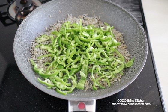 今回のメイン具材は、ピーマンとちりめんじゃこ。
