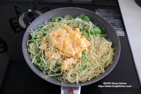 麺にピーマンとちりめんじゃこの絡むので、食べやすいです。