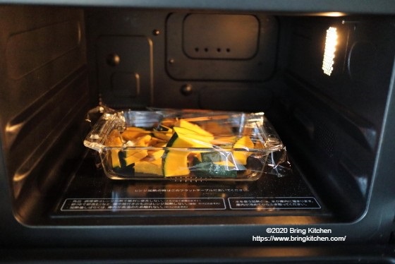 ポイント かぼちゃを電子レンジにかける事により、火の通りが早く時短になります。