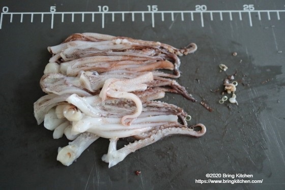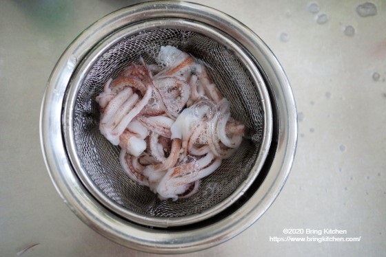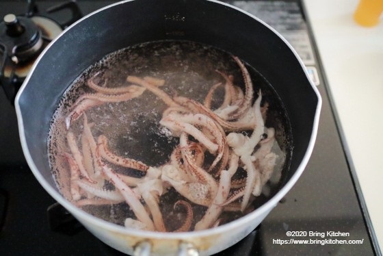 イカゲソの茹で時間は20秒の短さ。