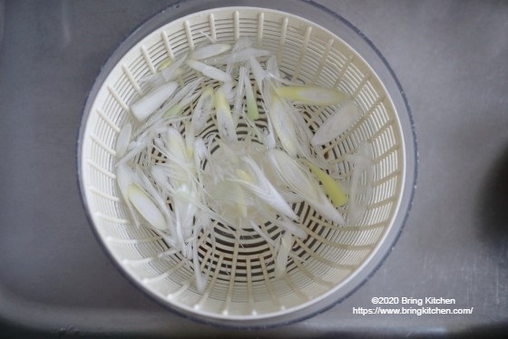 ポイント イカゲソは熱いまま長ネギと和えて、長ネギの辛みを飛ばします。