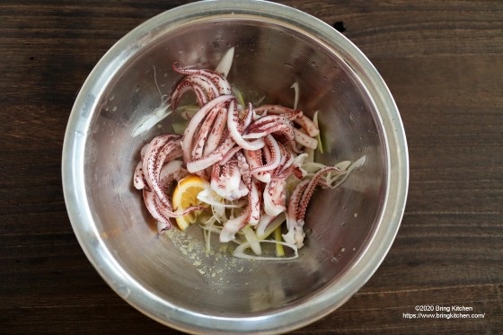 おうち居酒屋★【レシピ】イカゲソのネギレモン和え