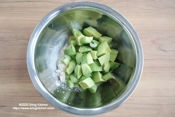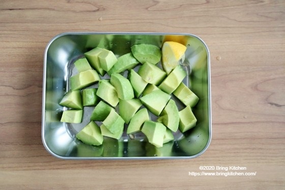 時間:5分 材料(二人分) ・アボカド 1個(130g) ・セロリ(茎の部分) 70g ・カニ缶 1個 調味料 ・マヨネーズ 大さじ1と1/2 ・塩 ひとつまみ ・黒胡椒 少々 ・レモン汁 適量 作り方 1. アボカドは皮を剥いて種を取ったら一口大に切り、レモン汁をかけておく。 2. セロリの筋を取り、1㎝程度のぶつ切りにする。 3. ボウルに、カニ缶と調味料、セロリ、アボカドを入れてよく和えるたら完成。
