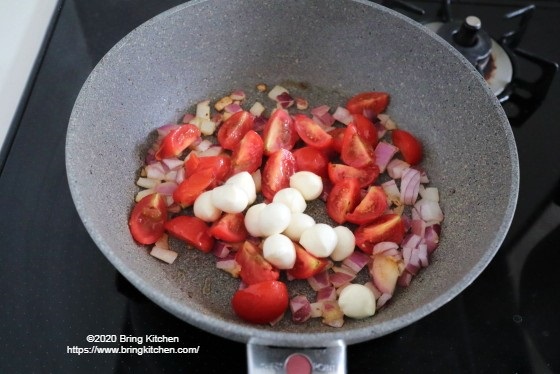 リーチェ 120g ・ミニトマト 6粒(100g) ・モッツァレラチーズ 50g ・紫玉ねぎ 1/4個(50g) ・おろしにんにく 小さじ1/2 ・オリーブ油 大さじ1 ・水 500㏄ 調味料 ・塩 ふたつまみ ・黒胡椒 少々 作り方 1. ミニトマトはヘタを取り、4等分に切る。 2. 紫玉ねぎをみじん切りにする。 3. 鍋に湯を沸かし塩(適量・分量外)を加え、ピエトロ AGNESI(アネージ)リーチェを7分間茹でる。 4. フライパンにオリーブ油入れて中火にかけ、オリーブ油が温まったら紫玉ねぎとおろしにんにくを入れて炒める。 5. 紫玉ねぎに火が通ったら、ミニトマトとモッツァレラチーズを加える。 6. パスタの茹で汁を大さじ2と、塩、黒胡椒を加えてよく混ぜる。 7. 湯を切ったリーチェを加えて、全体を混ぜ合わせたら完成。