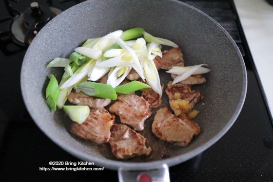 歯ごたえのある豚肩肉に、しんなりとした長ネギが絡んで美味♡