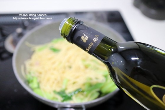 「和」な野菜の小松菜を使用していますが、醤油味の和風スパゲティとは違って、しっかりとイタリアンです。