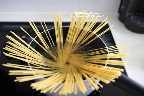 スパゲティはモニターで頂いた「ピエトロ AGNESI(アネージ)スパゲティ」を使用。