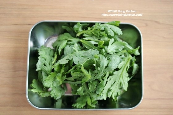 ポイント 春菊は葉先の柔らかいものでしたら生で頂けます。新鮮な春菊を使いましょう。