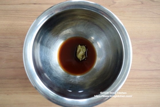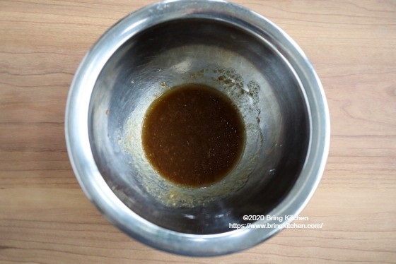 時間:10分 材料(2人分) ・春菊(葉先の柔らかいもの) 50g ・柿 1個(100g) ドレッシング調味料 ・バルサミコドレッシング 大さじ1 ・わさび 小さじ1 ・塩 ふたつまみ ・ガーリックパウダー 少々 ・オリーブ油 大さじ1 作り方 1. 春菊は葉先の柔らかい箇所をちぎる。 2. 柿は皮を剥き、細切りにする。 3. ボウルにバルサミコドレッシングとわさび、塩、ガーリックパウダーを入れて混ぜ合わせる。
