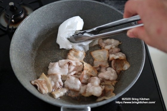 作り方 1. 福島県産ネギは斜め切りにする。 2. 豚バラ肉は適当な大きさに切る。 3. フライパンを中火にかけてサラダ油を入れて、フライパンが温まったら豚バラ肉を重ならないようにを入れて焼く。 4. 表面に焦げ目がついたらひっくり返し、余分な脂をペーペータオルでふき取り、ネギと塩を加える。 5. ネギがしんなりとしてきたら、カレー粉を加えて炒める。 6. めんつゆと水を加えて、全体が馴染んだら水で溶いた片栗粉を加え、とろみがついたら完成。