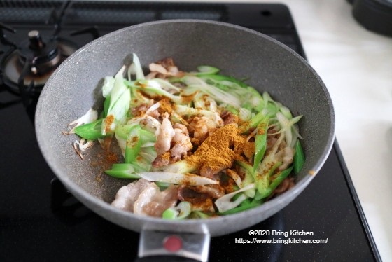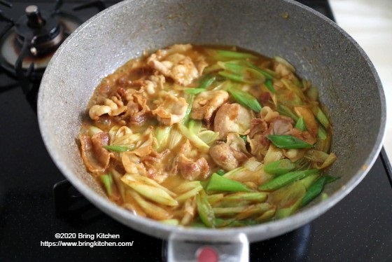 カレーうどんのうどん抜き★【レシピ】ネギと豚バラのカレー餡