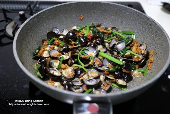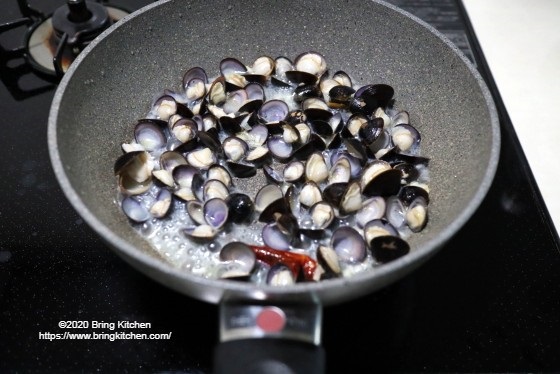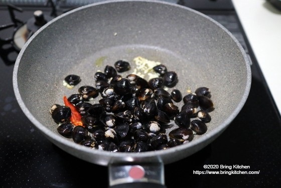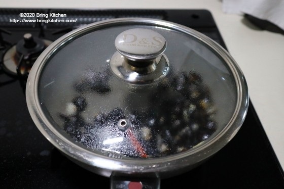 1分程度で殻が開くので、後は一気に仕上げます。