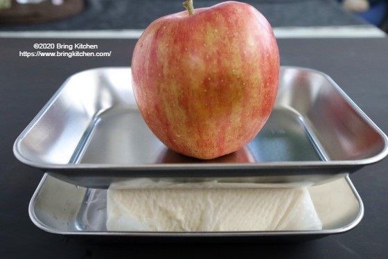 今回は、りんごを使って重しに。