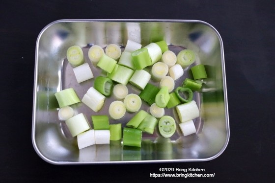 5. 蓋を取り、中火に戻したらネギを加える。 6. 砂糖とめんつゆを加えて、全体が絡むように炒めたら完成。