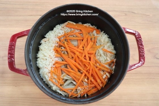 炊飯ボタン、もしくは炊き込みご飯モードで炊く。