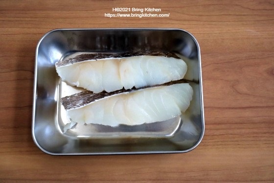 鱈の下に水分がたまっていますので、盛りつけの際は上からかけてあげます。