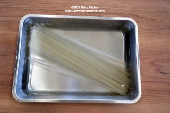 しかも、今回は幅広のビーフンを使っているので、絡んでより綺麗な色になりました。