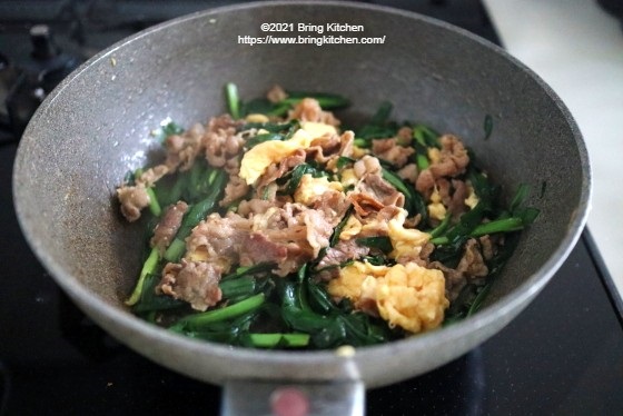 定番おかずをボリュームアップ!【レシピ】牛肉入りにら玉 トリプル主食の話付き★