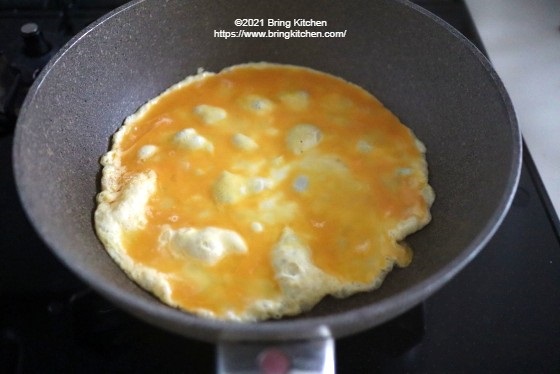 ポイント フライパンを十分に熱することで、卵がふんわりと仕上がります。