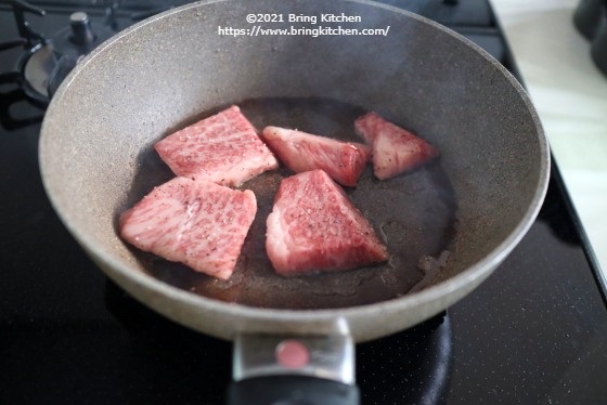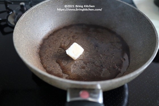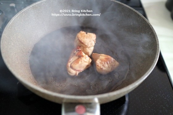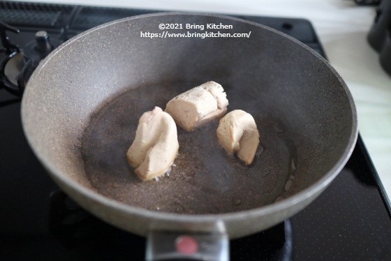 フォアグラは焦げやすいので、弱めの中火で焼きます。 中までしっかりと火を通します。