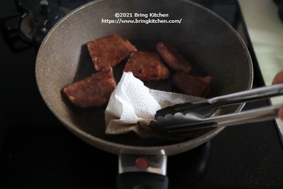 とにかく脂が出るので、ペーパータオルでふき取りながら焼くのがコツです。