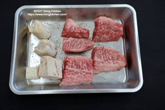 主人の実家ではお正月にステーキを食べる習慣があるので、フォアグラを差し入れしてロッシーニ風にして楽しみます。