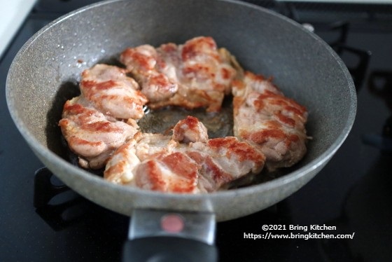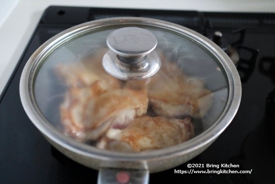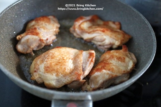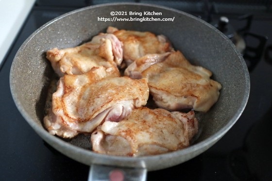 ポイント ホワイトペパーはたっぷりと振ります。 最後に皮目を焼く際は、鶏もも肉から出た脂をかけながら焼くと美味しく仕上がります。