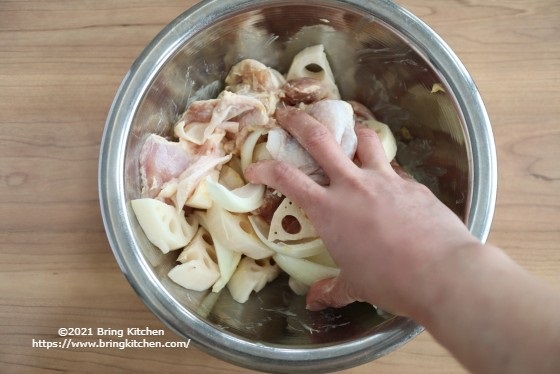 揉んで焼くだけ!【レシピ】鶏肉と蓮根のオーブン焼き(カレーマヨ味♡)