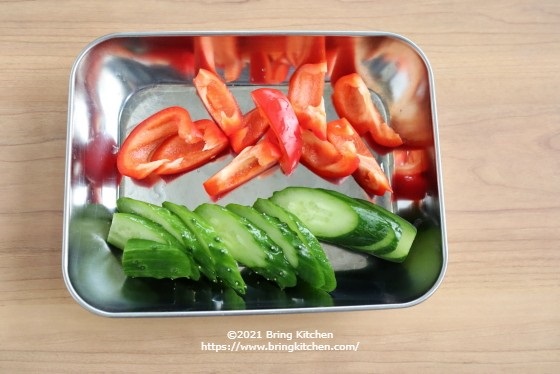 時間:10分(漬け時間は除く) 材料(2人分) ・きゅうり 1本(80g) ・パプリカ(赤) 60g