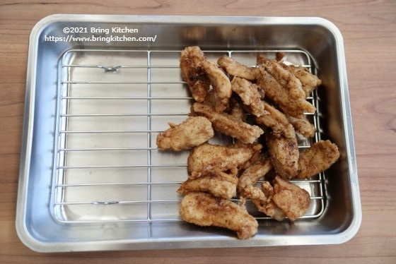 やげん軟骨を、ケイジャンミックスを入れた粉にまぶして揚げました